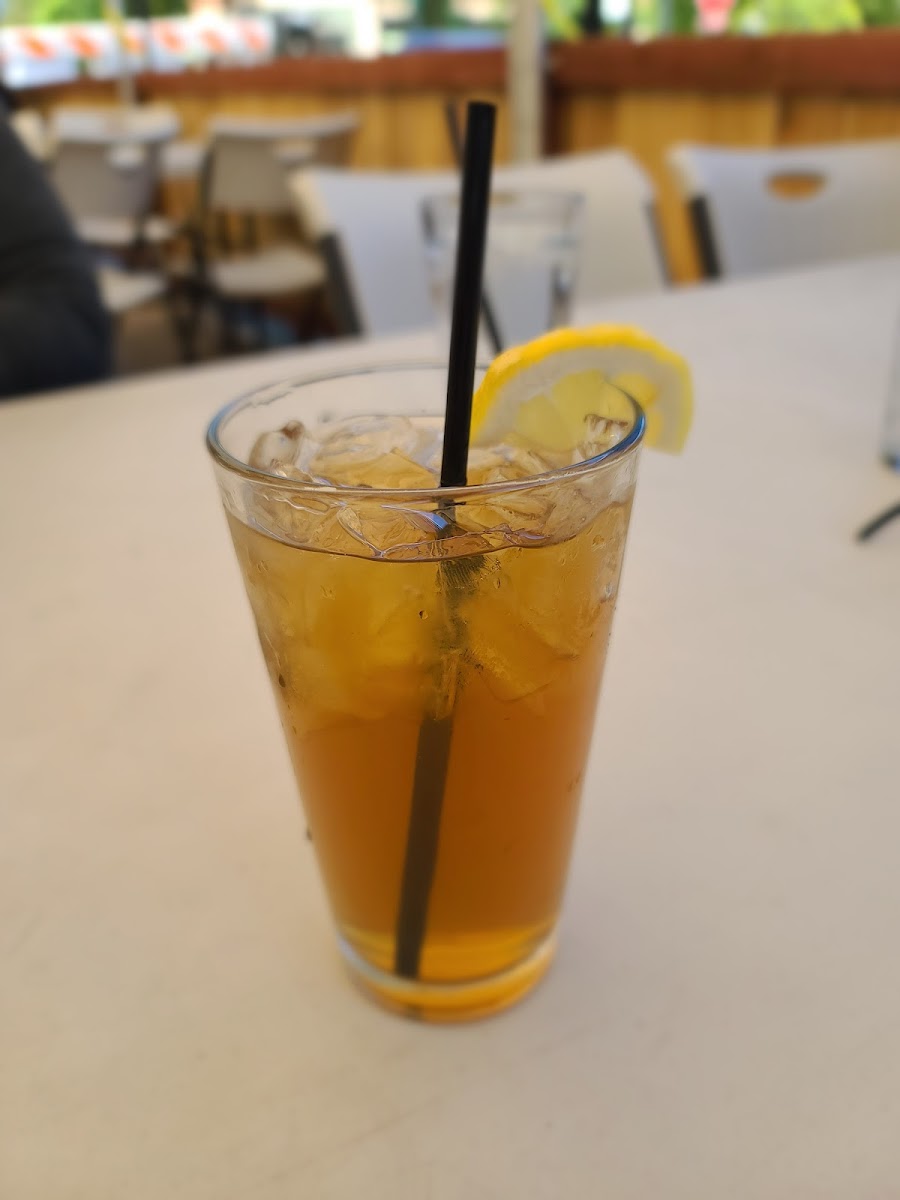 1st time here. Patio lunch for the most amazing swiss mushroom burger & delicious fries but the service was above & beyond. Both servers were friendly, attentive, & catered to our sweet older puppers bringing her a bowl of water, treats, & even a surprise basket of chicken. You made our day! Thank youuu