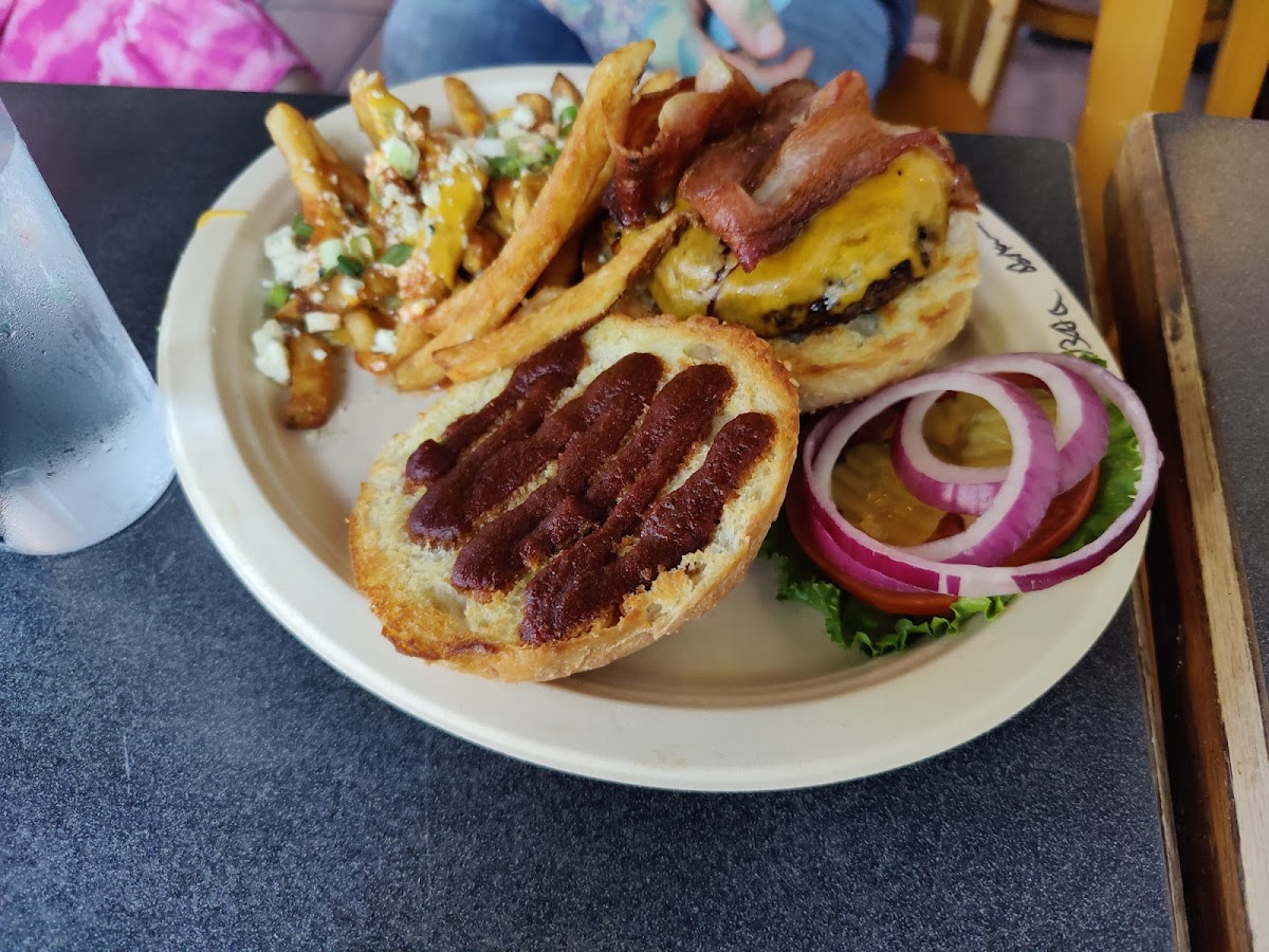 There is a reason why they’re the best burger in town and everyone who has tried the burgers would agree too! It’s so good and the fries are just as good! They stream fights and entertaining sports. If there’s no indoor seating, they have heated outdoor seating. The drinks aren’t overly pricey and moderately priced. This is the go to place for us when visitors want to eat good burgers.